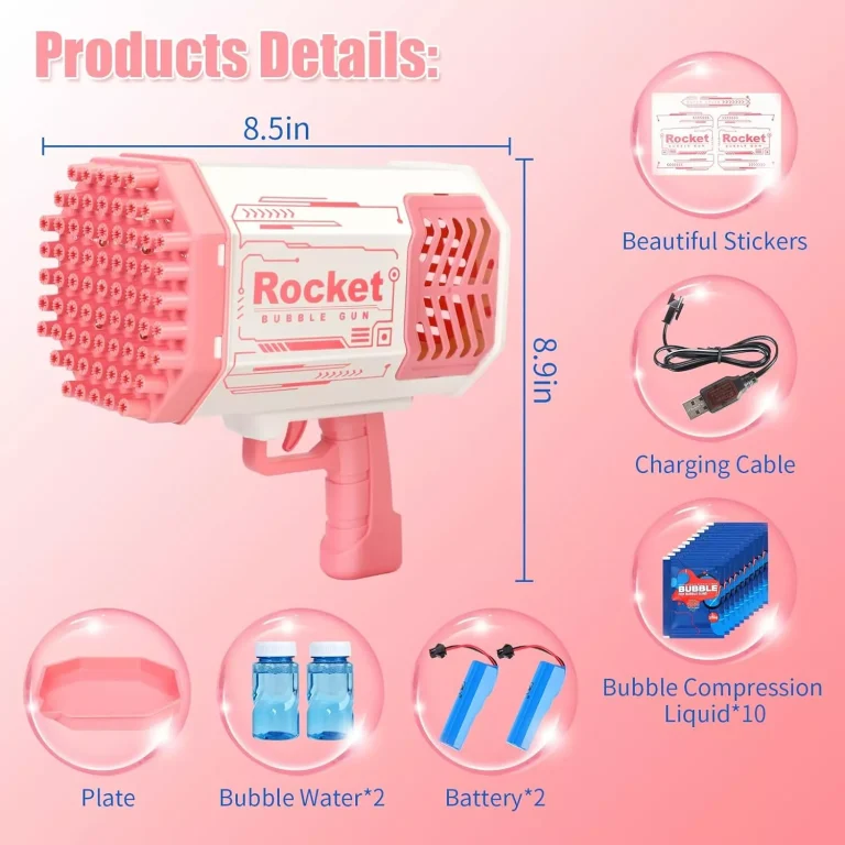 This Bubble gun is perfect for kids and adults alike. Just fill it with bubble solution, pull the trigger, and watch as hundreds of shimmering bubbles cascade into the sky!